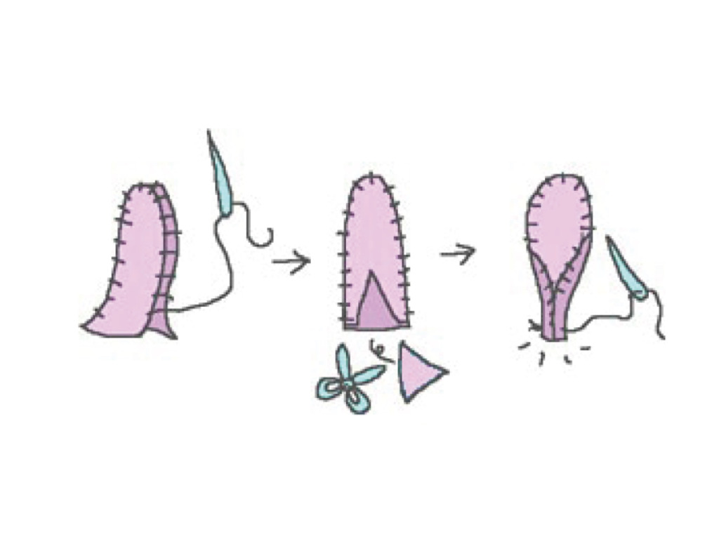 (2)縫えたら裏返す。