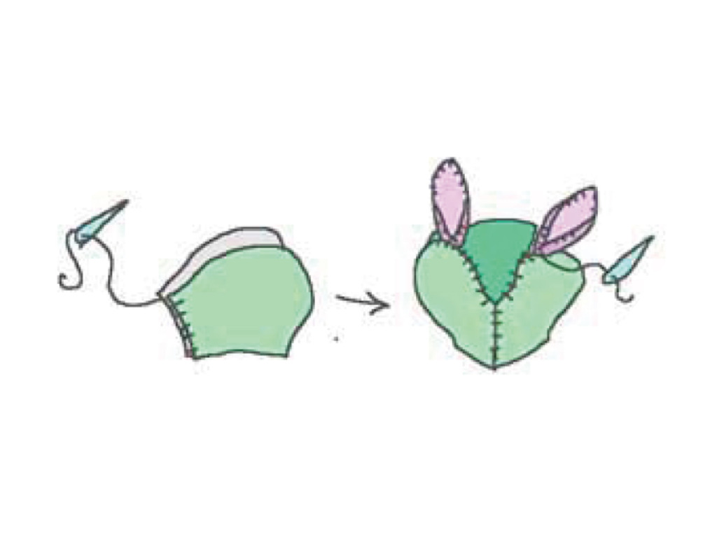 (1)耳パーツ2枚を縫い合わせる。