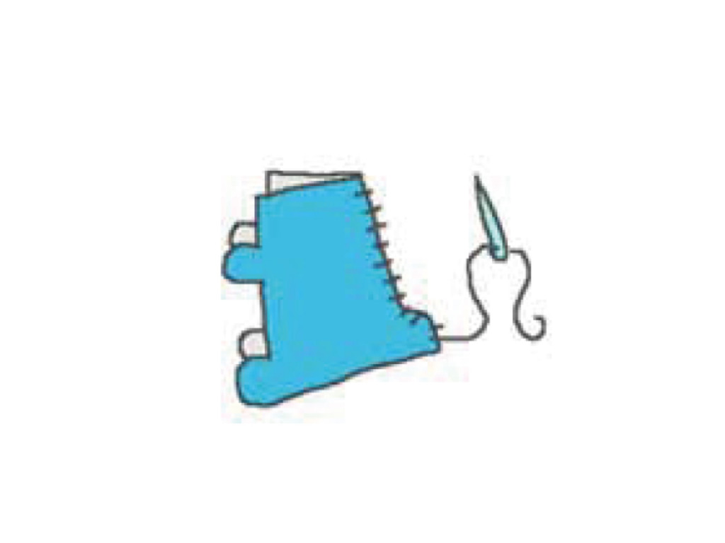 ワタを詰めながら、残りの部分を縫い合わせる。