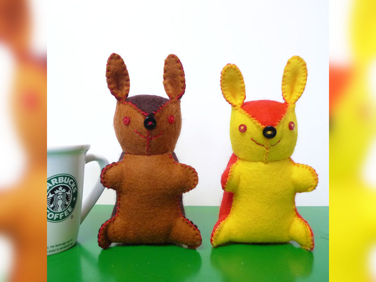 2011年の年賀状用に型紙からつくった、うさぎのフェルトマスコット。公開終了して長らく経ちますが、HPリニューアル記念に気まぐれ復活公開です。
